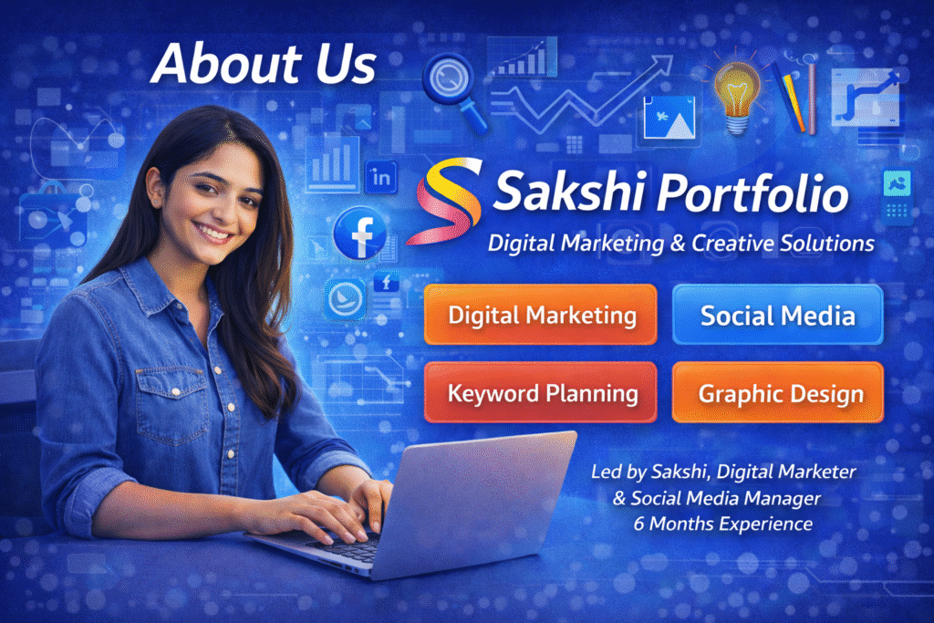 Welcome to Sakshi Portfolio, a personal digital marketing and creative services platform founded by Sakshi, a passionate digital marketer with real-world industry exposure. Built on practical experience and continuous learning, Sakshi Portfolio focuses on delivering digital solutions that are creative, effective, and aligned with today’s market needs.